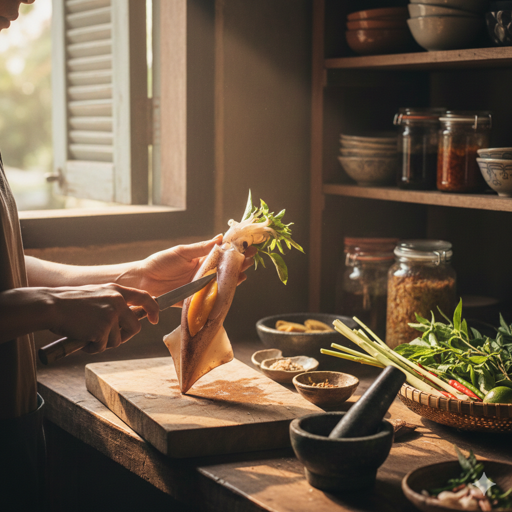 Mực Trứng Phan Thiết được lấy cảm hứng từ những chuyến tàu sớm ngoài khơi, khi mực vừa lên bờ còn tươi rói, trứng đầy thân – biểu tượng cho sự no đủ và trọn vị của biển cả. Sản phẩm giữ trọn nét mộc mạc, chân thật, đúng tinh thần “Chính Gốc Biển Đảo – Vẹn Tròn Vị Quê” của TH Foods.